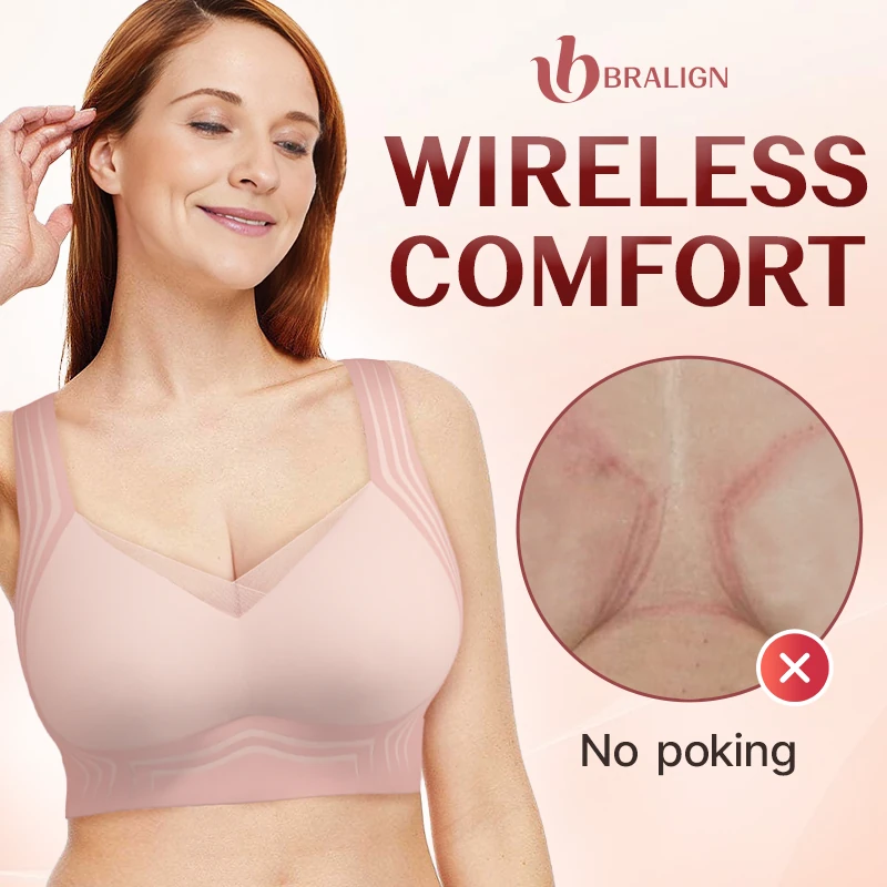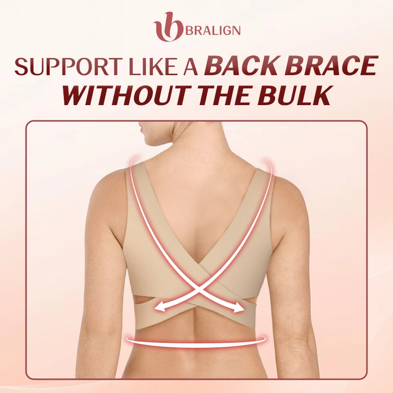 Experience unparalleled posture support with the Bralign's innovative X-shape back design. It gently pulls you back to reduce muscle tension and enhance body alignment for a better posture - all while remaining invisible under your clothing. It is suggested for anyone dealing with back pain or poor posture, and can also be a perfect post-surgical bra.